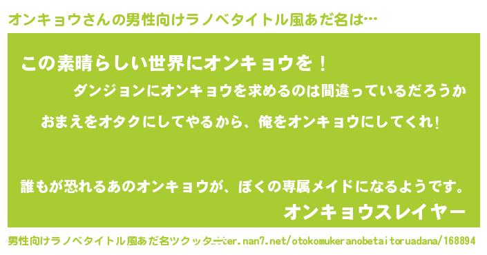 | ヘコむあだ名 | 『オンっ子』『オンキョウ(遠い目)』 |