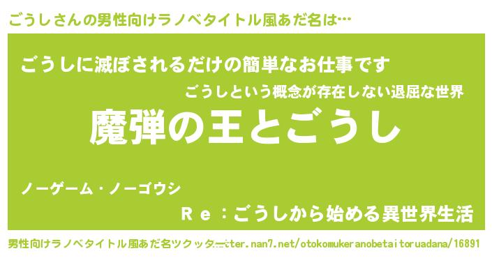 | ヒーロー風カッコイイあだ名 | 『仮面ゴウダー』『究極戦士ゴウシ』 |