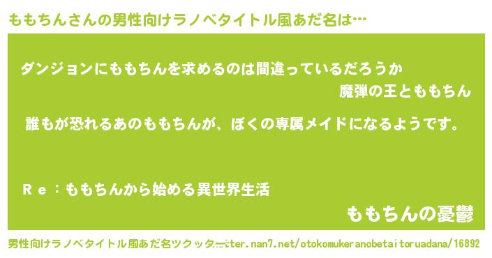 | 女子向けラノベタイトル風あだ名 | 『異世界でカフェももちんを開店しました。』 |