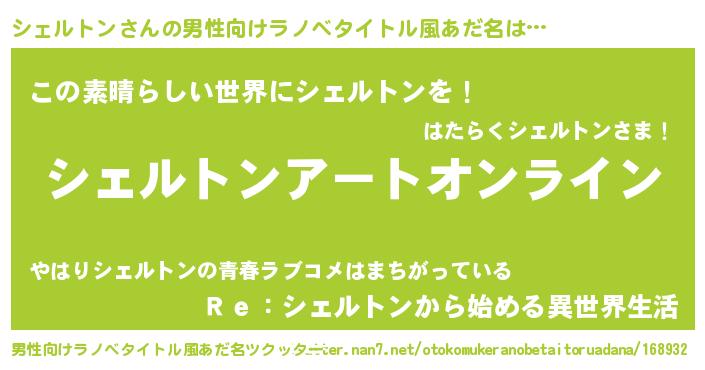 | 胡散臭い通販商品みたいなあだ名 | 『億万長者になれる霊験あらたかなお札…その名も「シェルトン」』 |