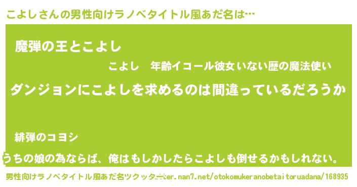 | ヘコむあだ名 | 『こよ太郎』『豆乳』『こよし(笑)』 |