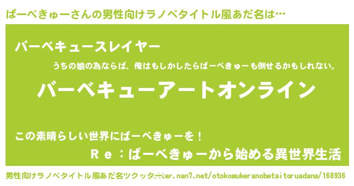 | 胡散臭い通販商品みたいなあだ名 | 『億万長者になれる霊験あらたかなお札…その名も「ばーべきゅー」』 |