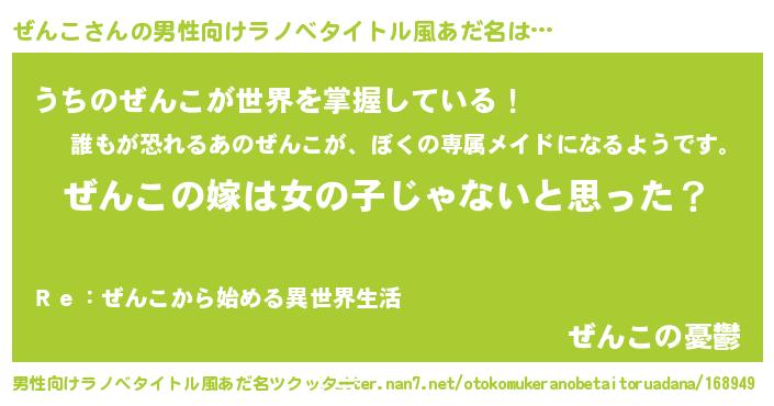 | 女子向けラノベタイトル風あだ名 | 『ぜんこ様がみてる』『闇のぜんこ』 |