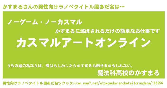 | 女子向けラノベタイトル風あだ名 | 『誰かこのかすまるを説明してください! ~契約から始まるウェディング~』 |