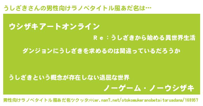 | 女子向けラノベタイトル風あだ名 | 『うしざきは平凡を望む』『闇のうしざき』 |