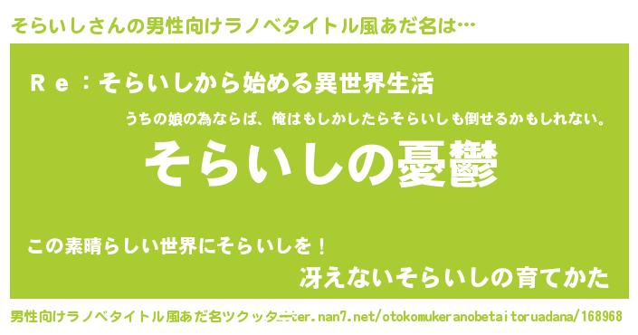 | 胡散臭い通販商品みたいなあだ名 | 『必ず成功するブレスレット…その名も「そらいし」』 |