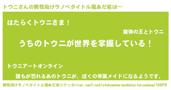 | ヘコむあだ名 | 『トウニ(笑)』『トウもー』 |