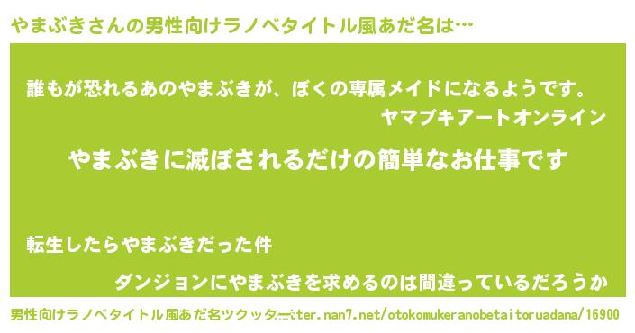 | 胡散臭い通販商品みたいなあだ名 | 『来世でも幸せになれる健康食品…その名も「やまぶき」』 |