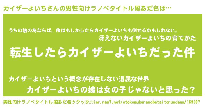 | 女子向けラノベタイトル風あだ名 | 『カイザーよいちの玉の輿計画!』 |