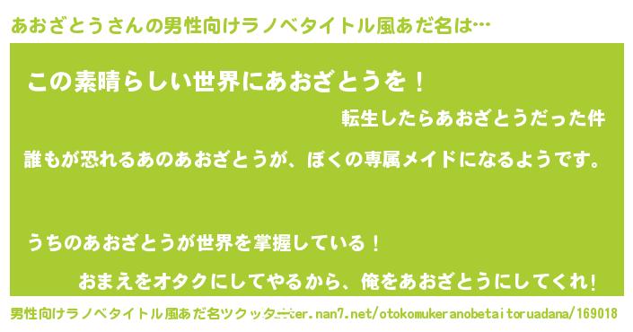 | 胡散臭い通販商品みたいなあだ名 | 『来世でも幸せになれる水素水…その名も「あおざとう」』 |