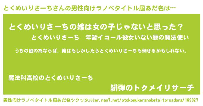 | 意味不明あだ名 | 『とくめいりさーちフォーエバー』 |