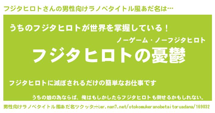 | 女子向けラノベタイトル風あだ名 | 『(仮)フジタヒロトのやんごとなき事情』 |