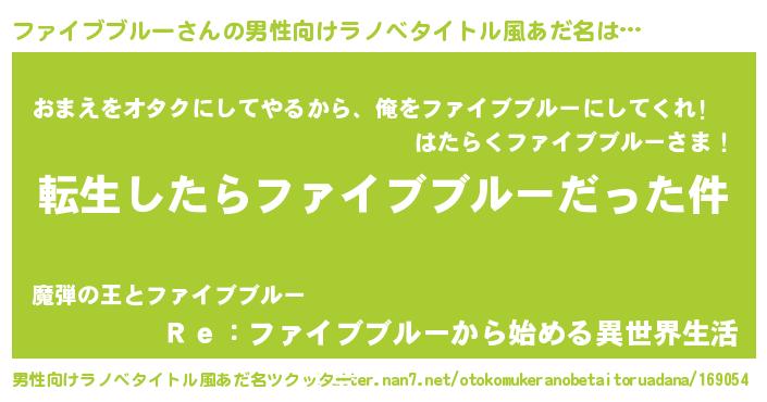 | 女子向けラノベタイトル風あだ名 | 『ファイブブルーの玉の輿計画!』 |