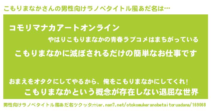 | ヒーロー風カッコイイあだ名 | 『スーパーコモリマナカ』『仮面コモダー』 |
