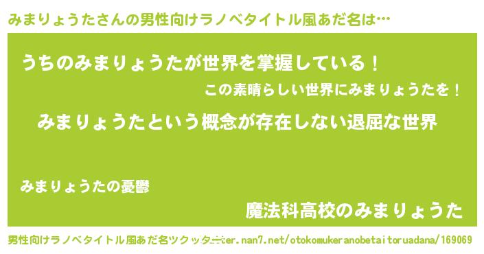 | 女子向けラノベタイトル風あだ名 | 『みまりょうたの契約王妃』 |