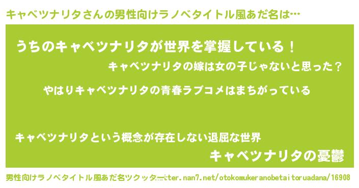 | 女子向けラノベタイトル風あだ名 | 『キャベツナリタ伯爵の花嫁』 |