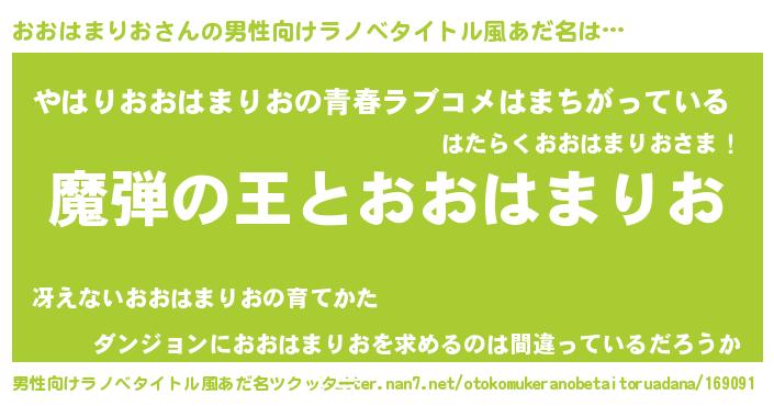 | 意味不明あだ名 | 『住所不定無職おおはまりお(86歳)』 |