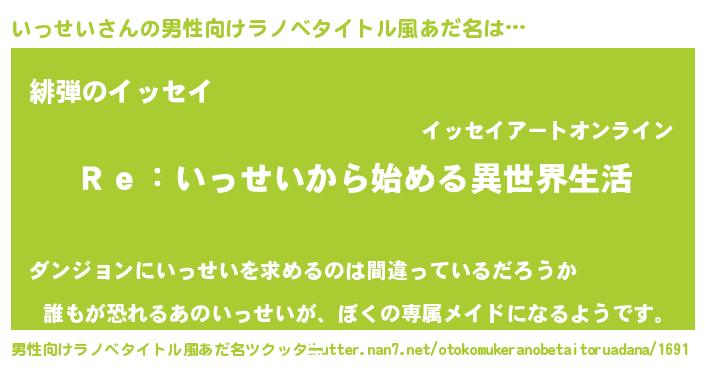 | ヘコむあだ名 | 『いっせい(笑)』『いっにー』 |