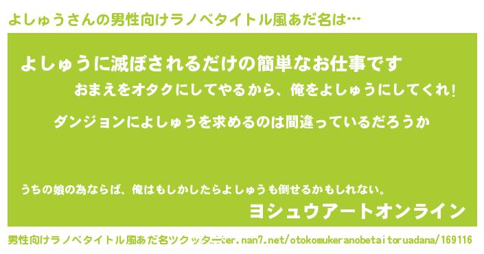 | 女子向けラノベタイトル風あだ名 | 『よしゅうは平凡を望む』 |