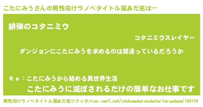 | 女子向けラノベタイトル風あだ名 | 『こたにみうの卵を拾いまして』 |
