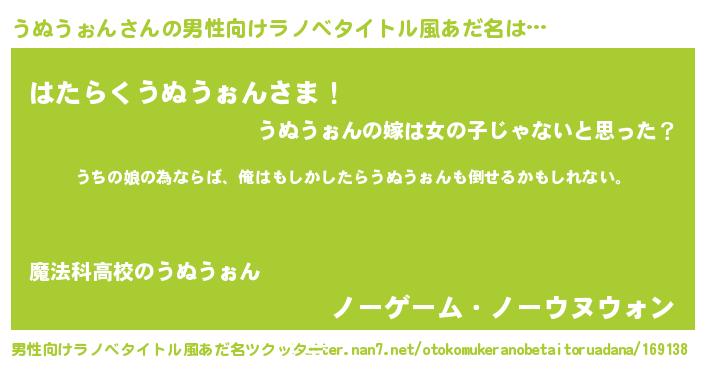 | 女子向けラノベタイトル風あだ名 | 『うぬうぉん伯爵の花嫁』 |