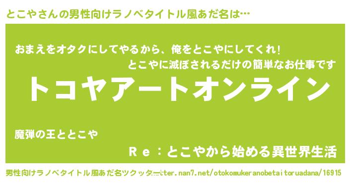 | 胡散臭い通販商品みたいなあだ名 | 『億万長者になれる水晶球…その名も「とこや」』 |