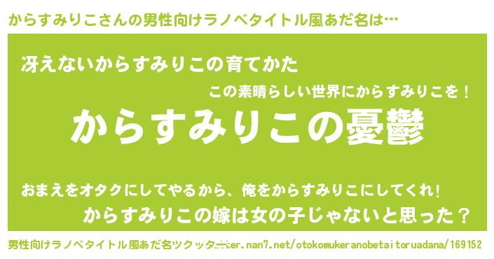 | 胡散臭い通販商品みたいなあだ名 | 『必ず成功するブレスレット…その名も「からすみりこ」』 |