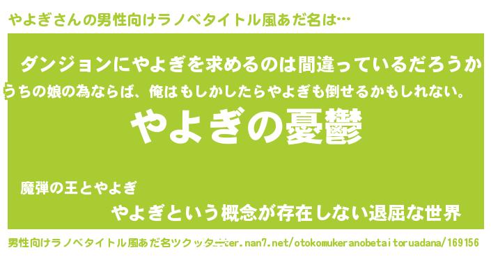 | 女子向けラノベタイトル風あだ名 | 『(仮)やよぎのやんごとなき事情』 |
