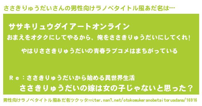| ファンタジー風あだ名 | 『エターナルササキリュウダイー』 |