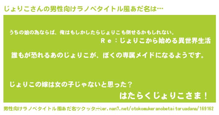 | 意味不明あだ名 | 『永久保存じょりこ』『自称じょりこ』 |