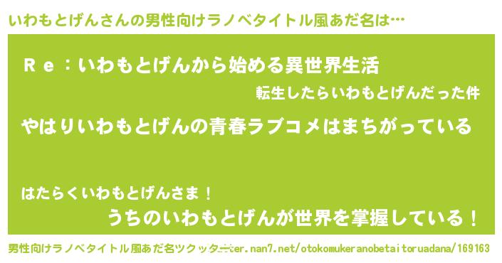 | 女子向けラノベタイトル風あだ名 | 『いわもとげんの雑貨屋さん』 |