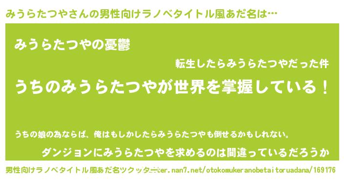 | ヒーロー風カッコイイあだ名 | 『スーパーミウラタツヤ』『暗黒騎士ミウ』 |
