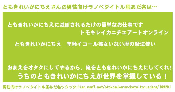 | 胡散臭い通販商品みたいなあだ名 | 『億万長者になれるブレスレット…その名も「ともきれいかにちえ」』 |