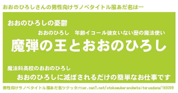 | 女子向けラノベタイトル風あだ名 | 『おおのひろしが死なない童話 林檎のおおのひろしの診療簿』 |
