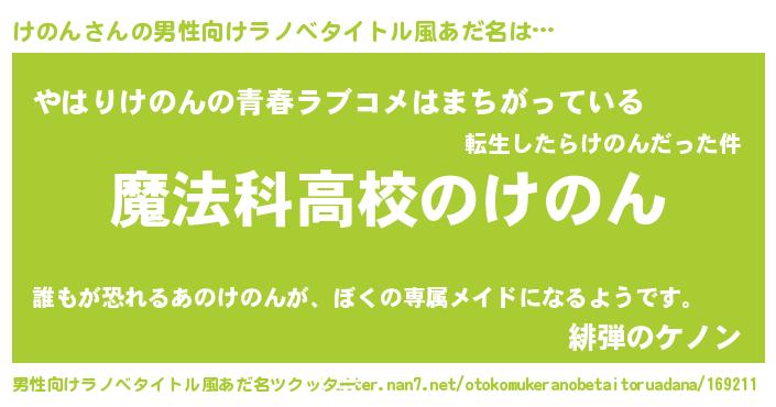 | 女子向けラノベタイトル風あだ名 | 『けのんアンティーク』 |