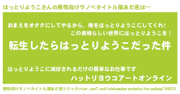 | 意味不明あだ名 | 『なめこ科はっとりようこ属』 |