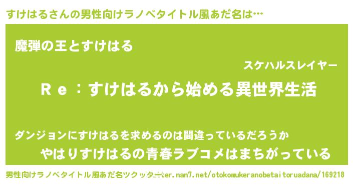 | 女子向けラノベタイトル風あだ名 | 『すけはるストレイドッグス』 |