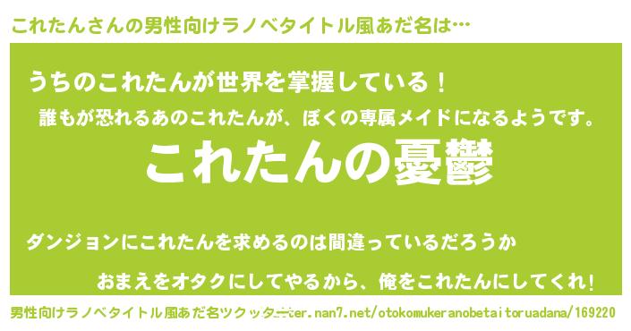 | 女子向けラノベタイトル風あだ名 | 『これたん姫と円卓の騎士』 |