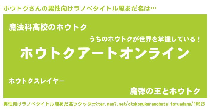 | ファンタジー風あだ名 | 『ホウフェル』『ゼホウトゥ』 |