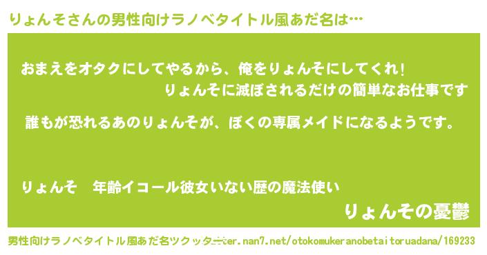 | 胡散臭い通販商品みたいなあだ名 | 『来世でも幸せになれる健康食品…その名も「りょんそ」』 |