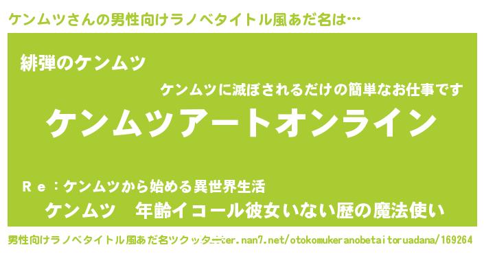 | 胡散臭い通販商品みたいなあだ名 | 『億万長者になれるブレスレット…その名も「ケンムツ」』 |