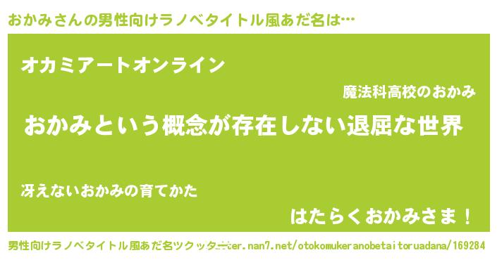 | 胡散臭い通販商品みたいなあだ名 | 『来世でも幸せになれる健康食品…その名も「おかみ」』 |