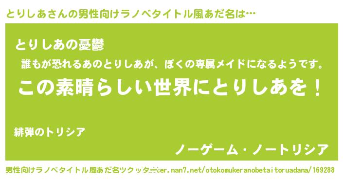 | 意味不明あだ名 | 『住所不定無職とりしあ(10歳)』 |