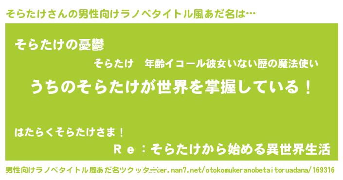 | 胡散臭い通販商品みたいなあだ名 | 『億万長者になれる霊験あらたかなお札…その名も「そらたけ」』 |