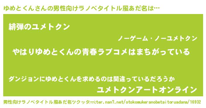 | 女子向けラノベタイトル風あだ名 | 『ゆめとくんの雑貨屋さん』 |