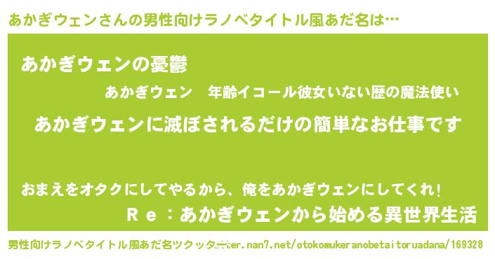 | 女子向けラノベタイトル風あだ名 | 『横柄あかぎウェンと宰相陛下』 |