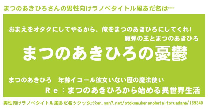 | 女子向けラノベタイトル風あだ名 | 『まつのあきひろ姫と円卓の騎士』 |