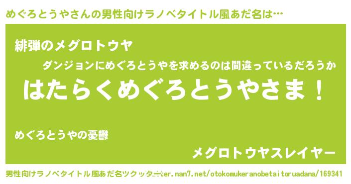 | ヒーロー風カッコイイあだ名 | 『魔戒騎士メグ』『スーパーメグロトウヤ』 |