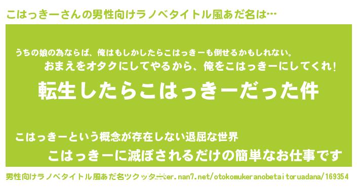 | 胡散臭い通販商品みたいなあだ名 | 『世界が平和になる高級そうな絵画…その名も「こはっきー」』 |