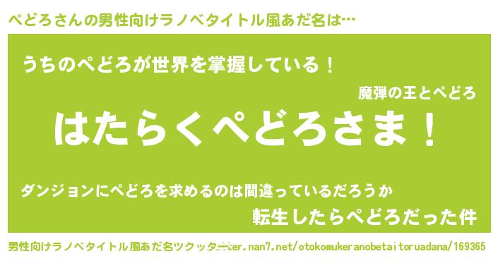 | 意味不明あだ名 | 『なめこ科ぺどろ属』『自称ぺどろ』 |